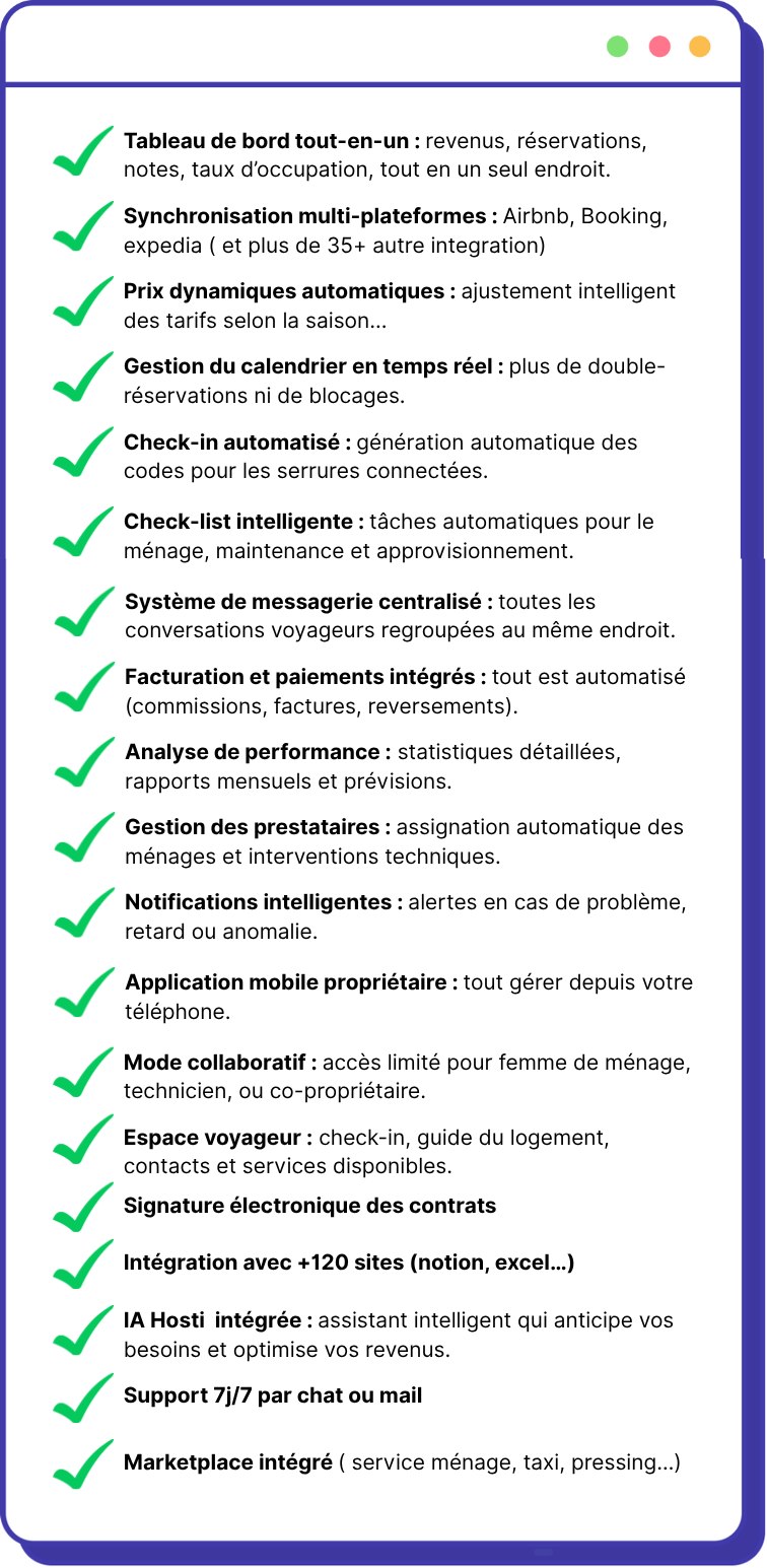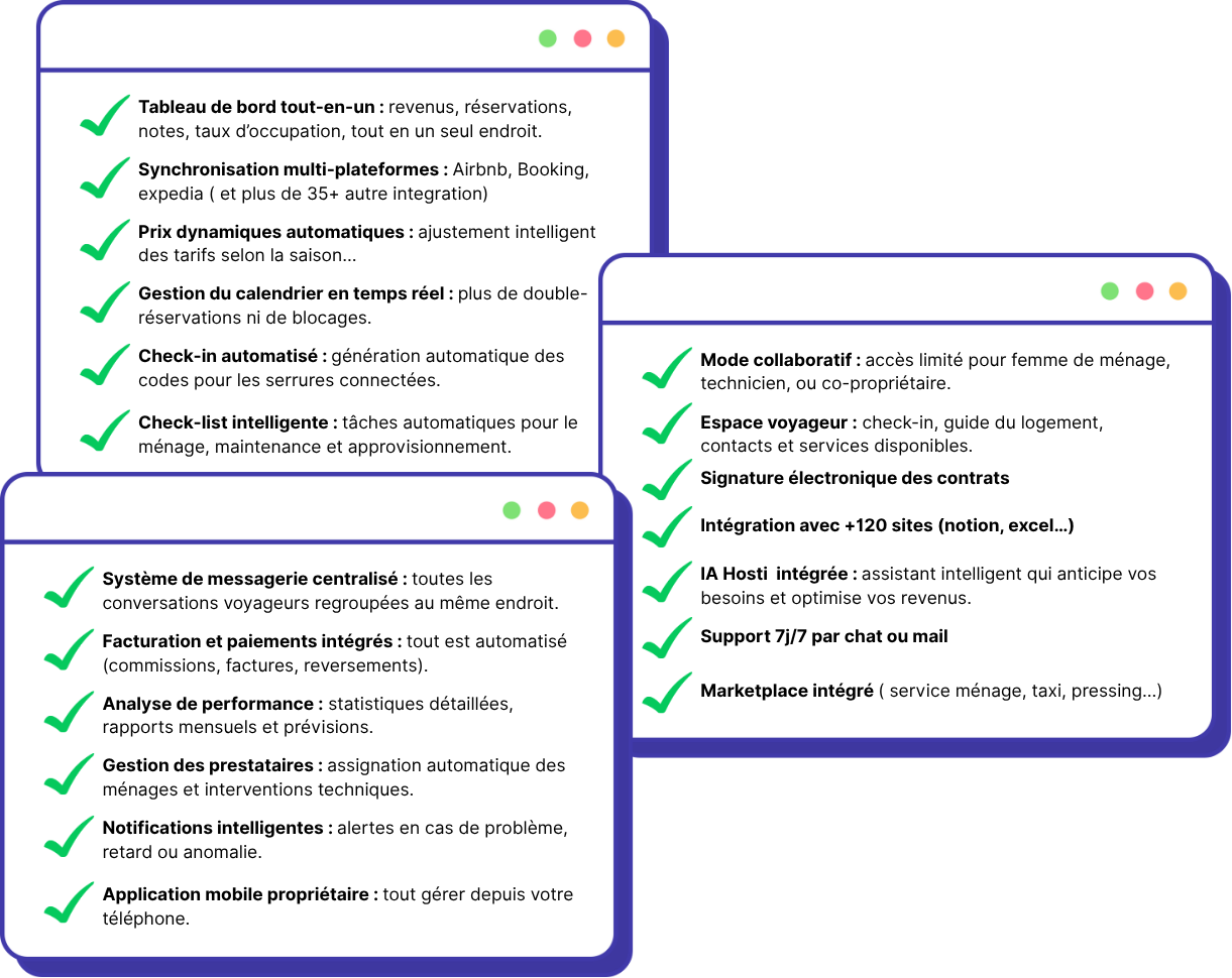La plateforme d’Hostiaa propose une multitude de fonctionnalités pour vous permettre de gérer efficacement vos locations